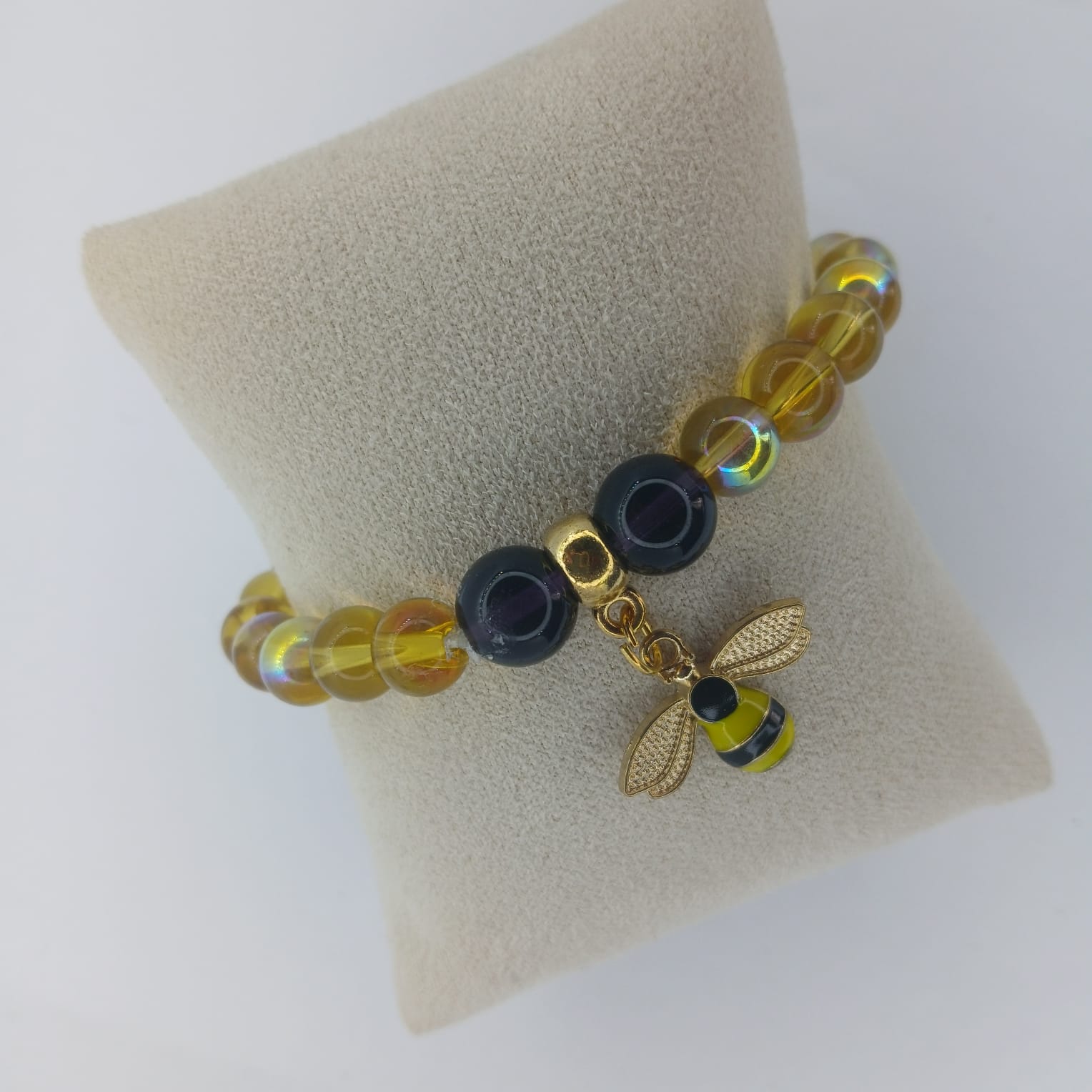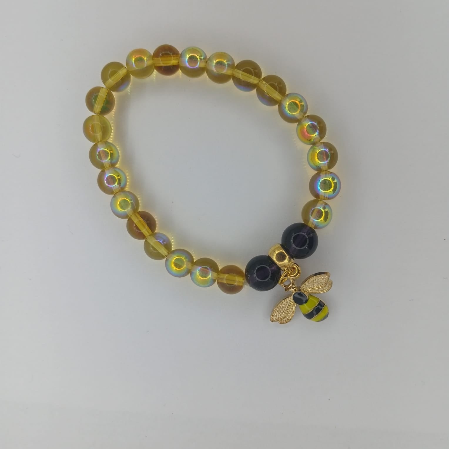 Stunning yellow glass and black beads with a beautiful bee as the charm and focal point.