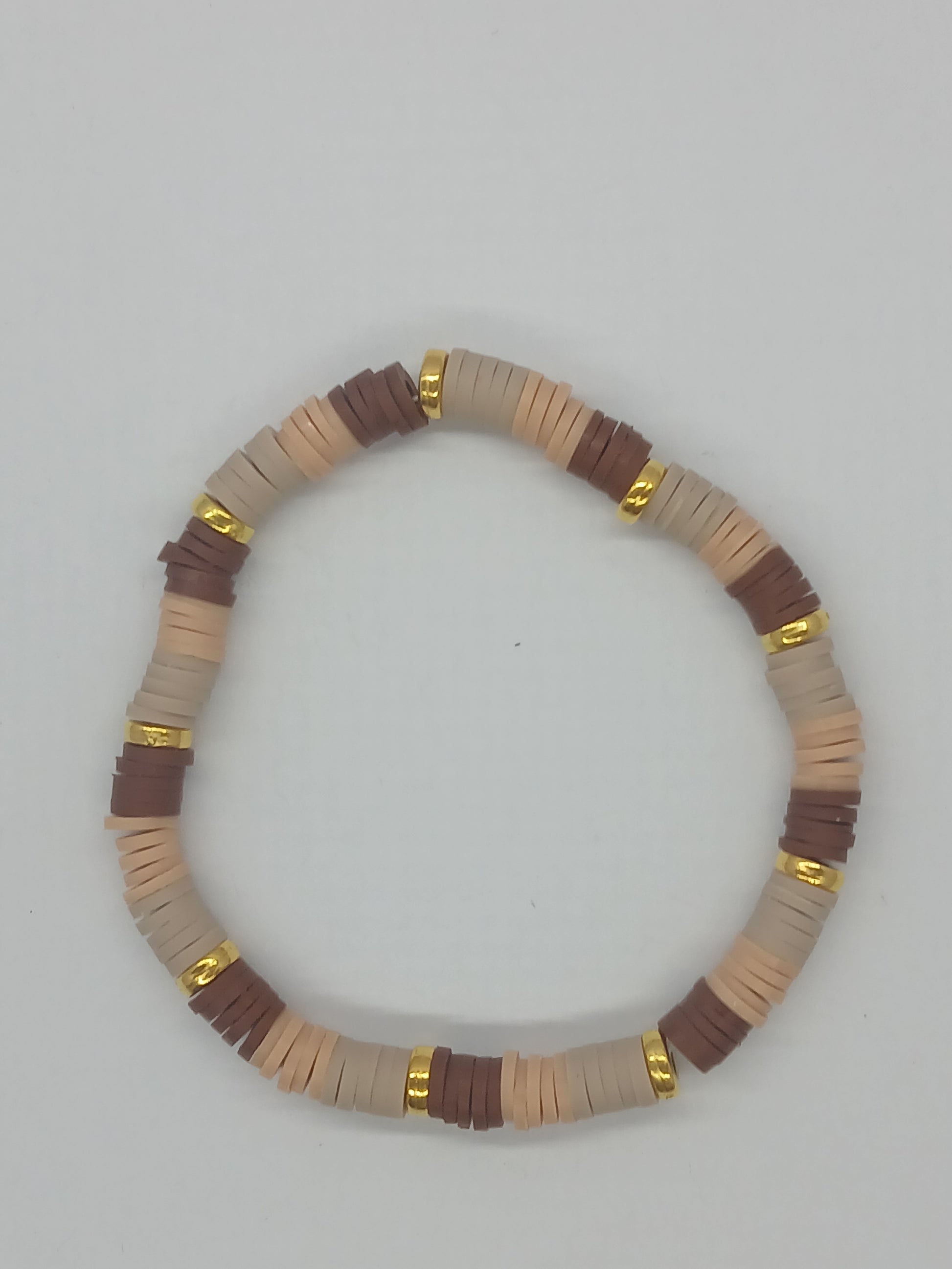 Brown, tan, nude with goldie discs Polymer Clay beaded stretchy