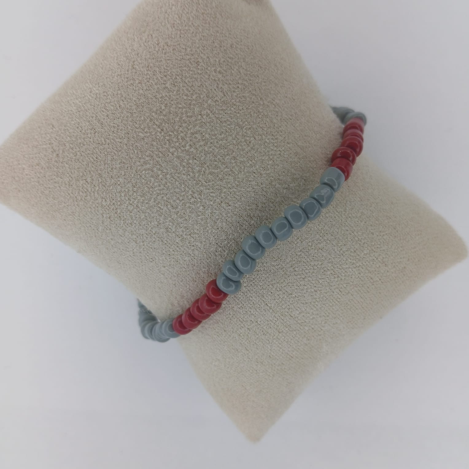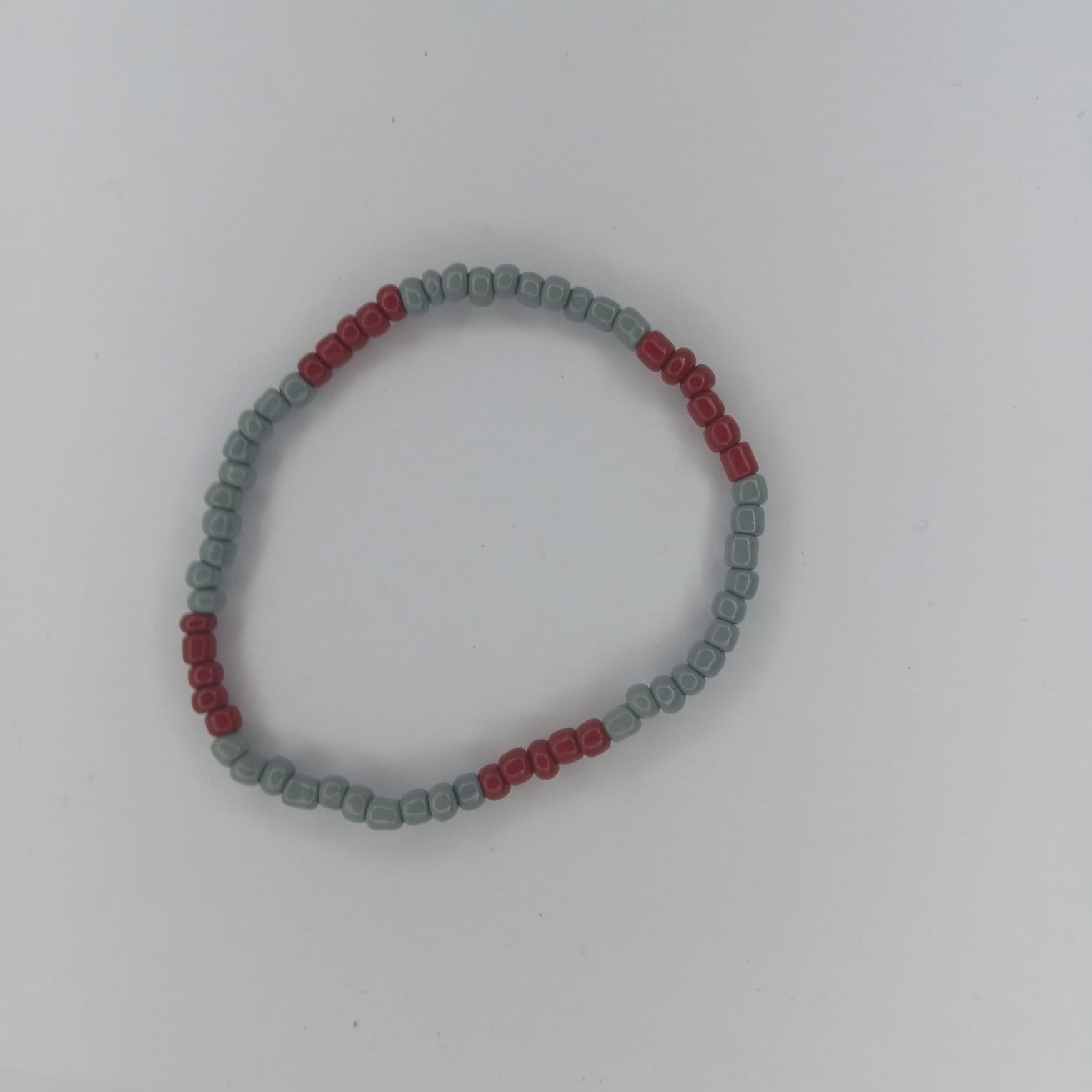 Gray and deep red seed beads create a solid look.