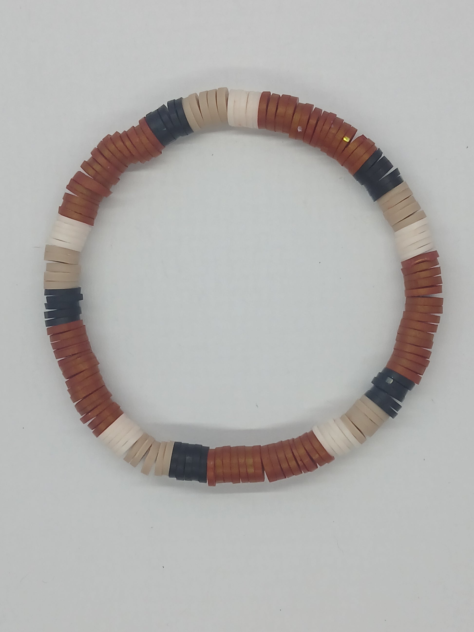 Brown, Black, Tan, Off white Polymer clay stretchy bracelet