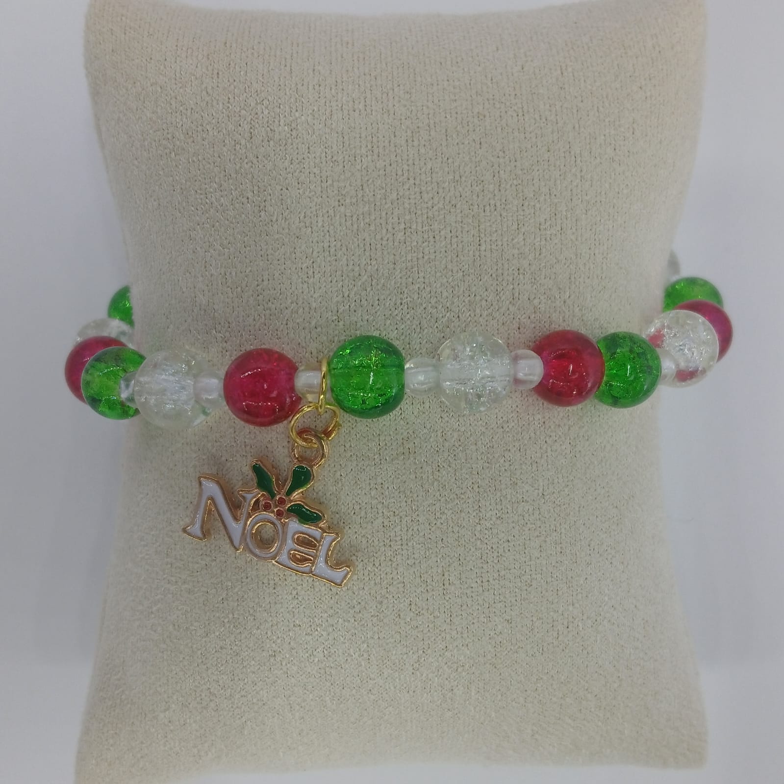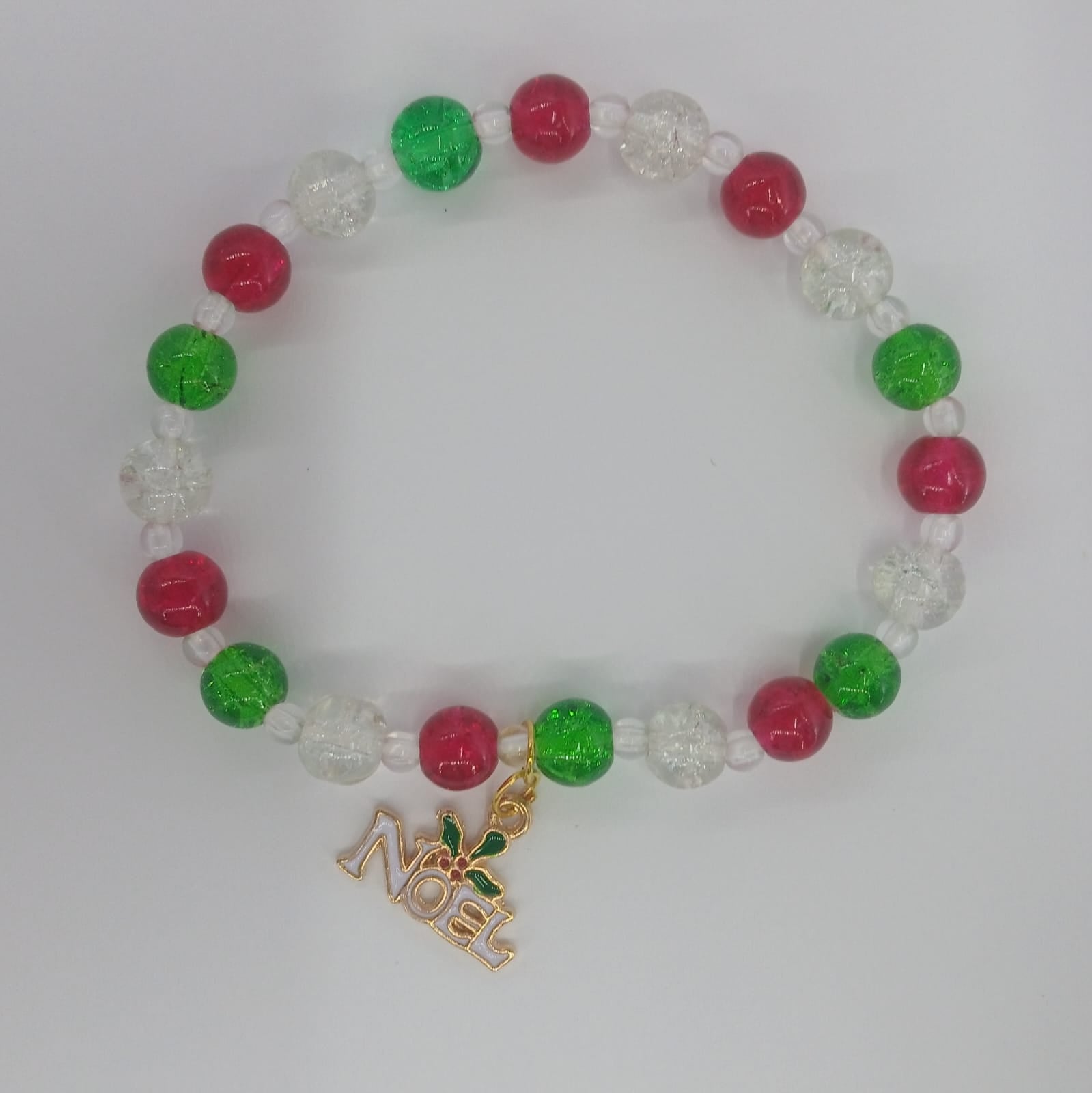 Crackle Christmas bead colours that show the Noel Charm off well. Its eye catching and oh, so festive.