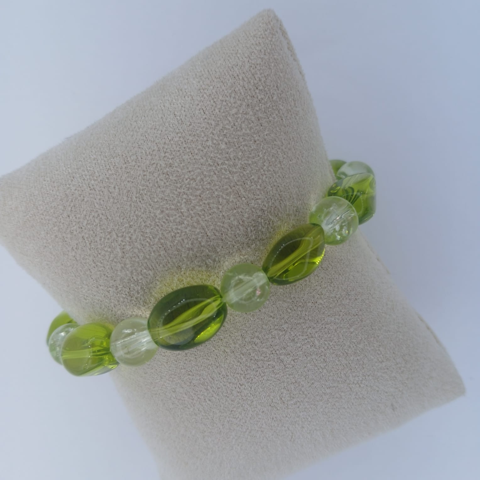 Stunning variety of green glass beads - Light, Fern and Lime Green. Feels solid and lovely on the skin.