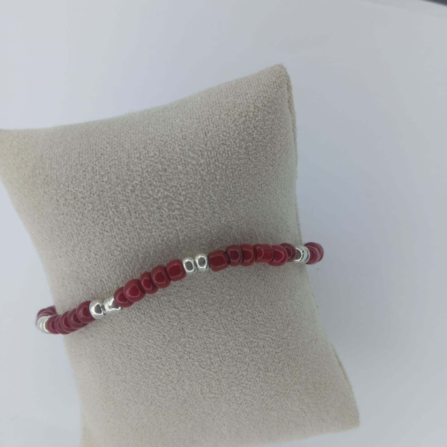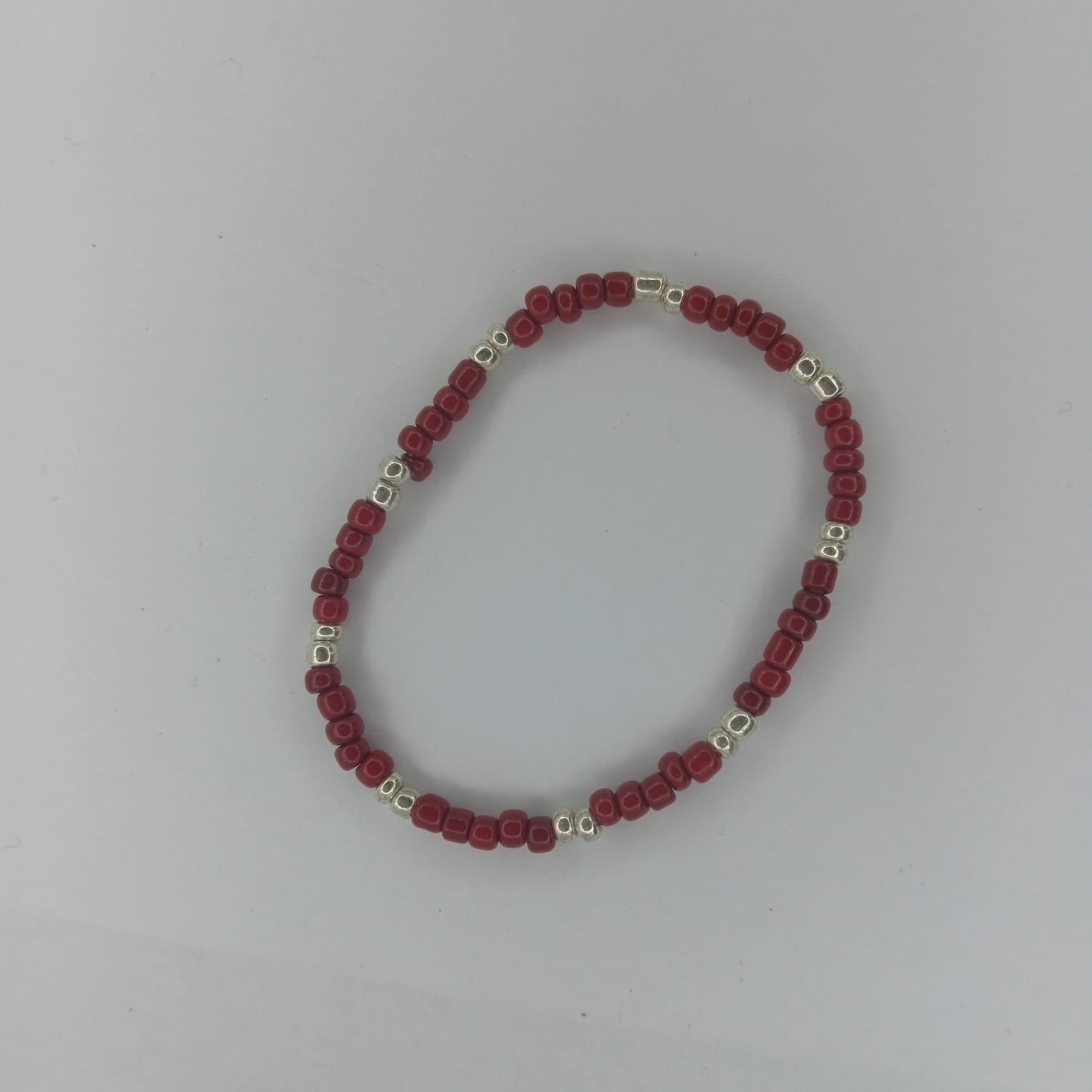 Deep red and silver seed bleads. Lovey combination.