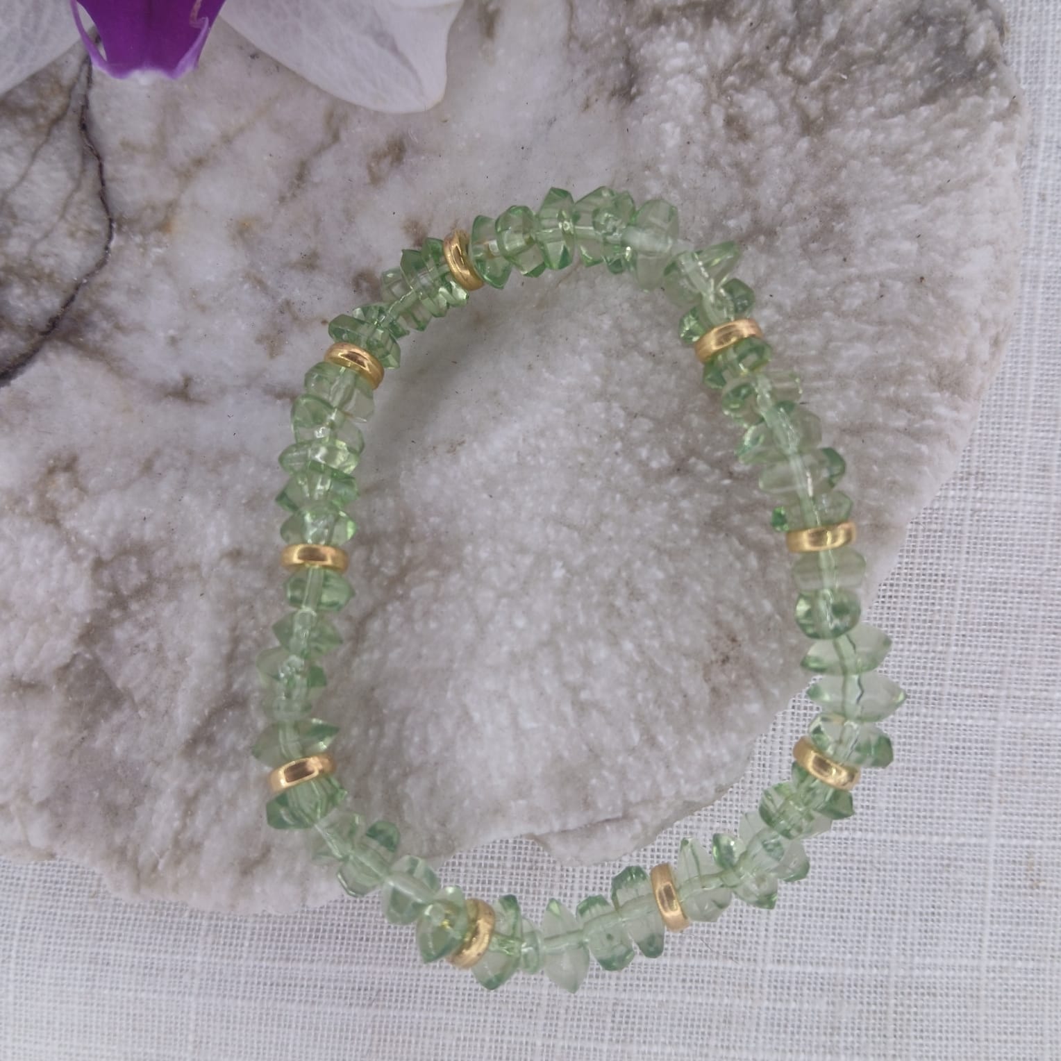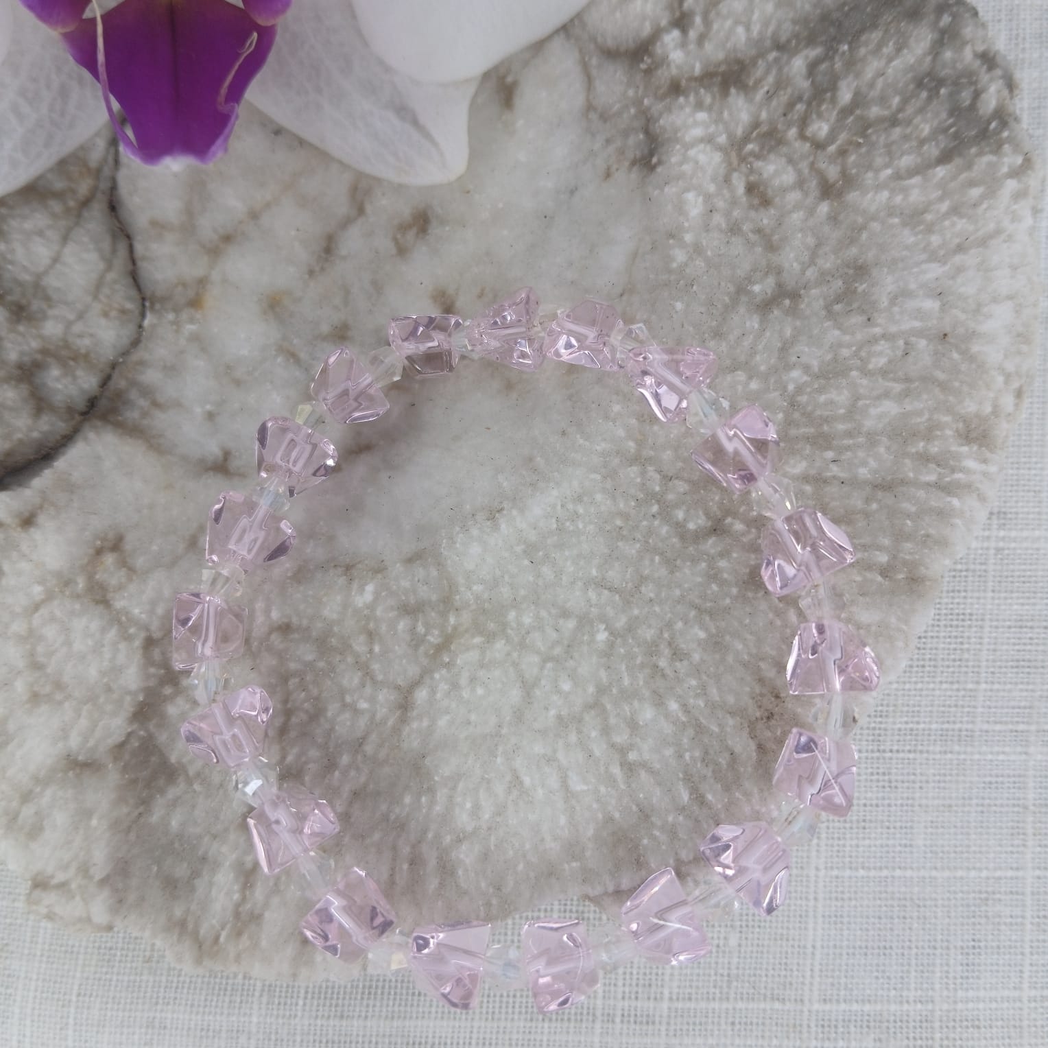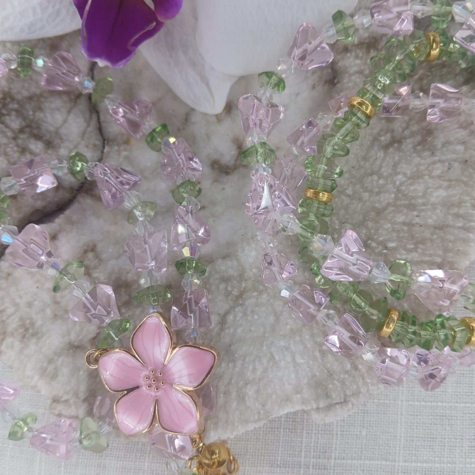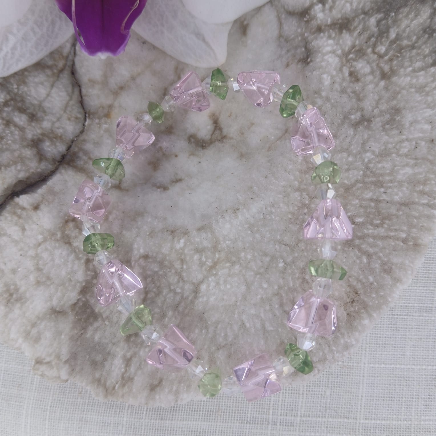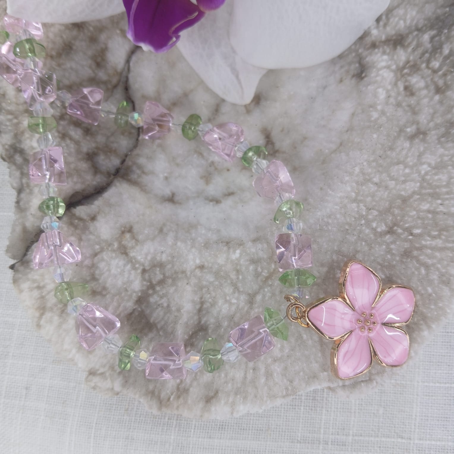 Beautiful hues of soft pink and light green. An elegant necklace and bracelet set. Looks beautiful on and can complement any outfit - day or night.